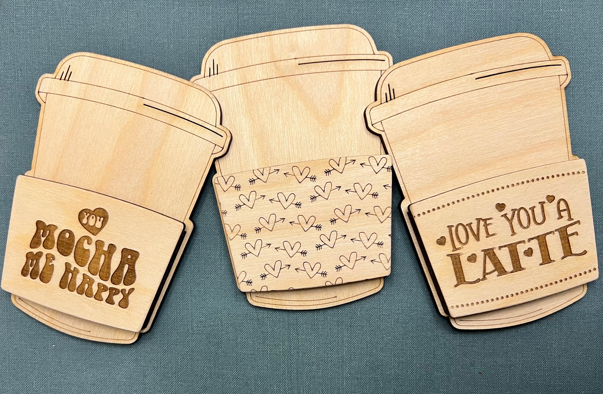 Wooden laser cut and engraved coffee gift card holder