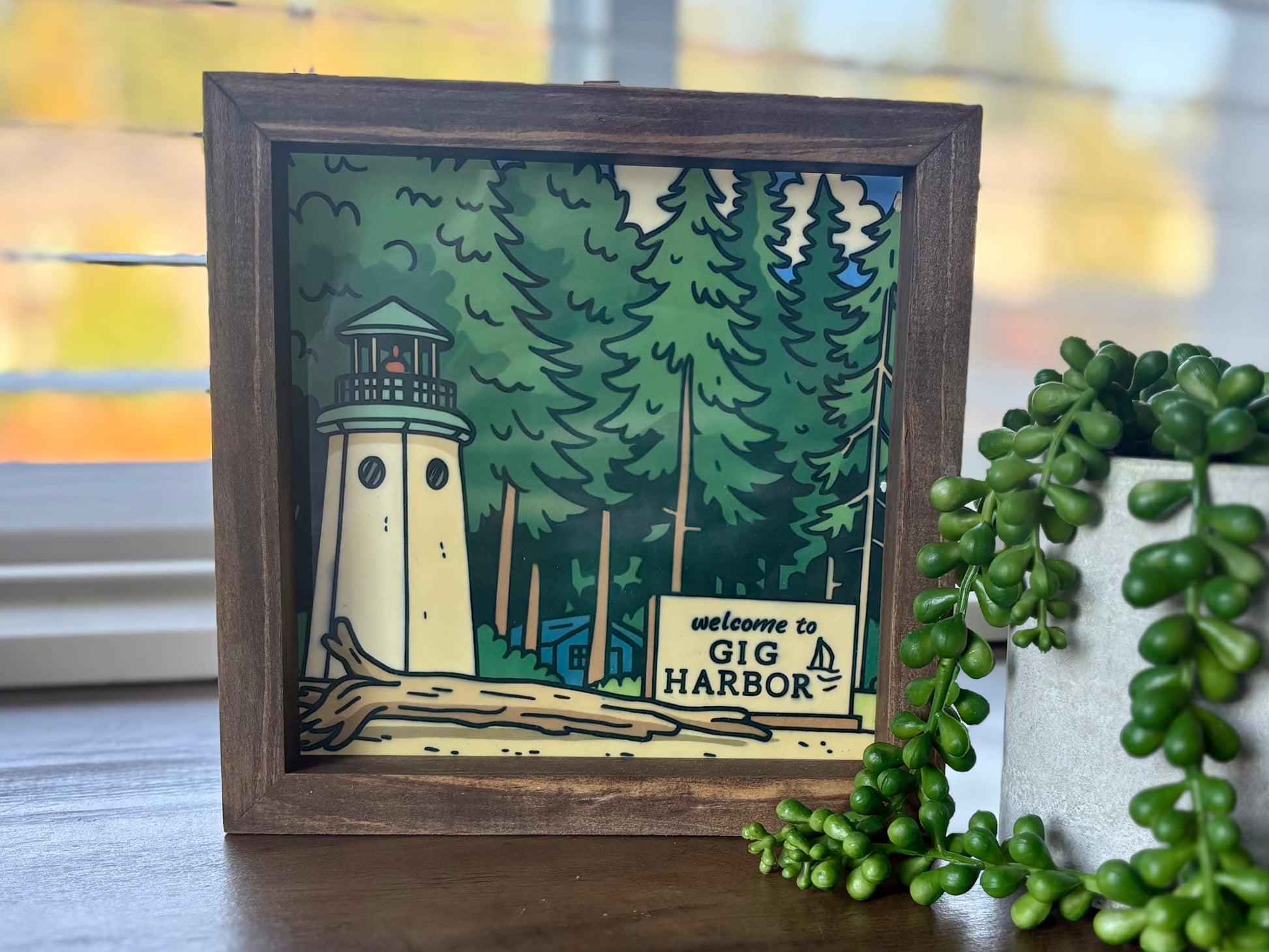 Discover the charming charm of Gig Harbor with our 8x8 sublimation pressed white acrylic framed wood sign. Perfect for welcoming guests and adding a touch of elegance to any home decor. Show off your love for this picturesque city with our high-quality sign.